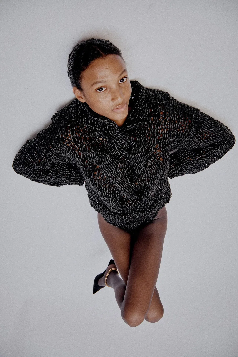If you’ve ever thought of knitwear as just "cozy sweaters," Aisling is here to politely change your mind. Based in Brooklyn with Trinidadian roots, she’s doing things with a spool of yarn that feel less like clothing and more like a mood.